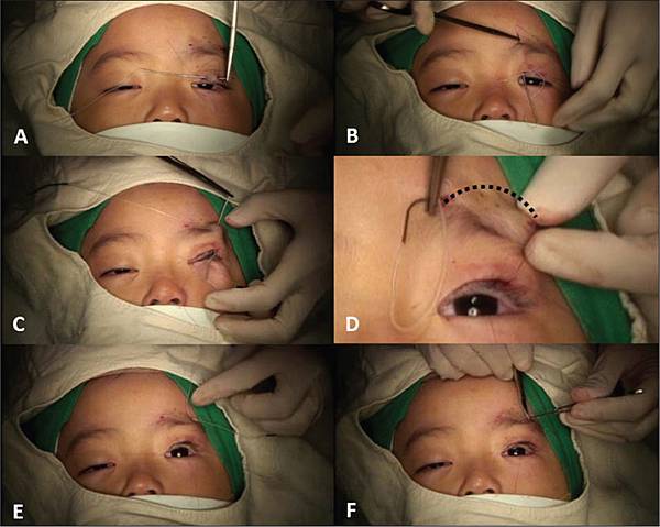 🔼🔼🔼上圖:雖然這個方法是個傳統做法,但是由於硅膠管(矽膠細管)容易取得,手術快速簡易,並且容易施作在小兒病患,所以目前仍經常被台灣眼科醫師使用來解決小兒嚴重提眼肌無力的矯正